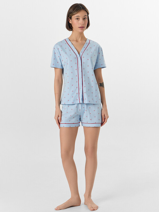 Совместные закупки Екатеринбург Женская одежда Пижамы, халаты — Mark Formelle КОСТЮМ ЖЕНСКИЙ (ЖАКЕТ, ШОРТЫ) 592348 592348 бантики на голубом 105