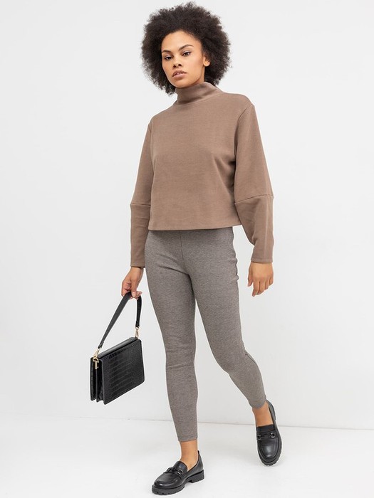 Леггинсы женские прилегающего силуэта из трикотажного полотна академик. Посадка высокая. Пояс отрезной из основного полотна. В боковом шве застежка на потайную молнию. На задней детали вытачки.