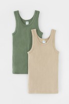 Набор из двух маек полуприлегающего силуэта из хлопковой трикотажной кулирки. Длина до середины бедер. Горловина круглая, окантована мягкой бейкой. Нижний срез обработан плоским швом. Комфортная классика для вашего мальчика!