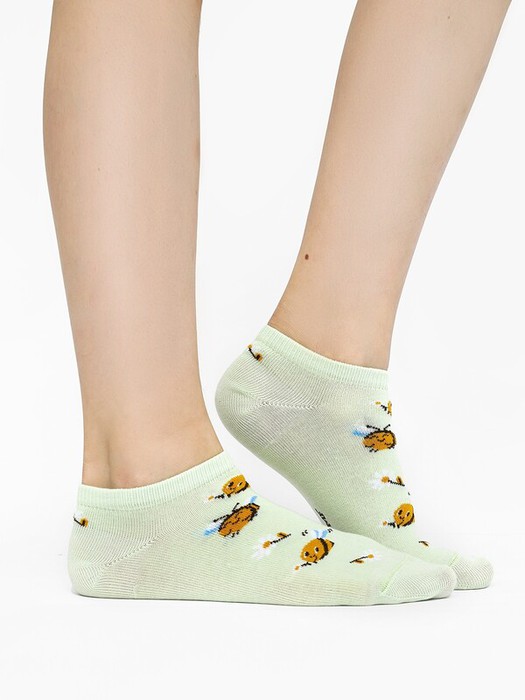 рис.1952 Укороченный детский носок с рисунком в виде пчелок и ромашек.
