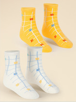 рис.3181 Детский укороченный носок с рисунком в виде двух цветов основы и мишки.