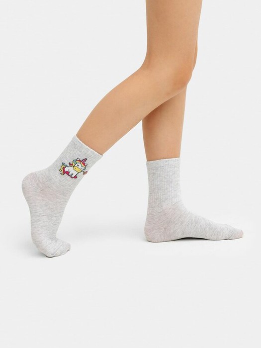 рис.2380  Детский носок с высоким плотным бортом и рисунком в виде единорога