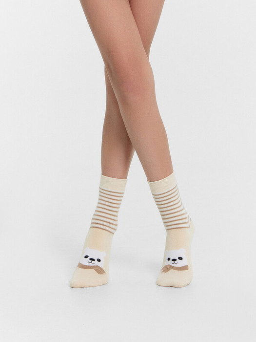 рис.2883 Детский махровый носок с рисунком в виде медведя и полосок.