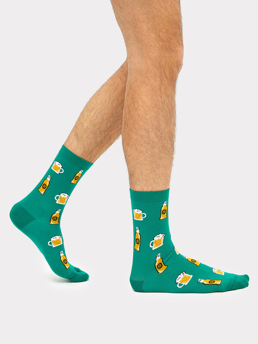 рис.1877 Мужской носок классический высокий с узкой резинкой и рисунком в виде пивных бокалов и бутылок.
