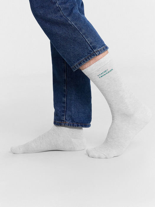 рис.3032 Мужской носок классический, высокий, с рисунком в виде надписи "Статус свободен".