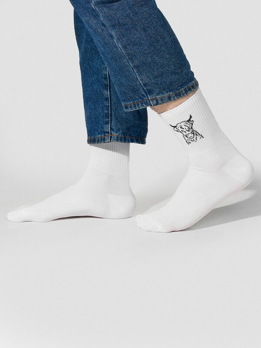 Рис.3086 Мужские носки, средней длины с резинкой на паголенке и рисунков в виде зубра.