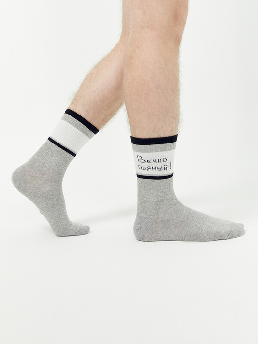 рис.2490 Мужской носок с высоким плотным бортом и рисунком в виде надписи "Вечно молодой" "Вечно пьяный".