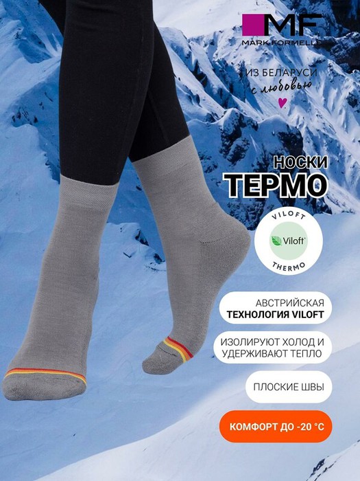 рис.014 Женские носки с плюшевым следом из термо-пряжи особого состава. Специальный полиэстер Termolite отлично сохраняет и удерживает тепло, мгновенно отводит влагу и делает изделие долговечным, а вискоза Viloft дарит полотну необычайную мягкость и увеличивает его прочность в мокром состоянии. Тонкие и легкие, эти носки отлично справляются со своей функцией при активной ходьбе и занятиях спортом.