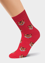 рис.2759 Женские носки средней высоты, с плотным бортом с рисунком в виде надписи EAT PASTA, RUN FASTA и цветного бортика.