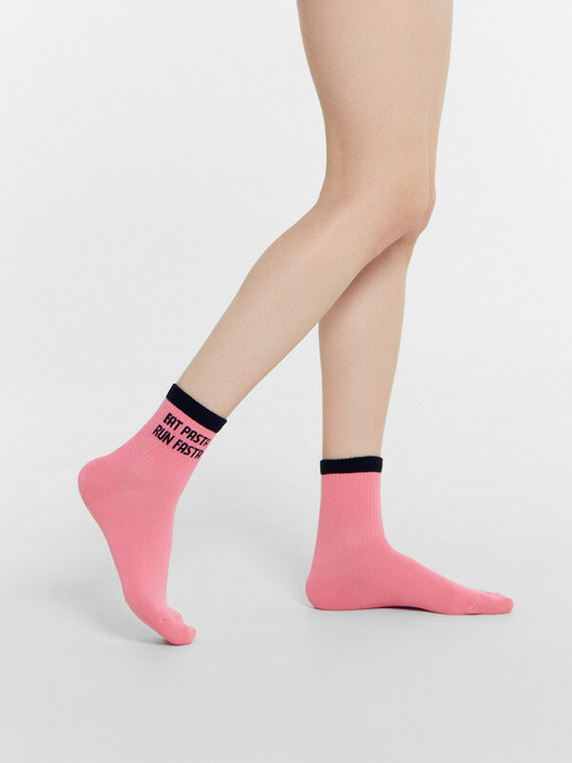рис.2759 Женские носки средней высоты, с плотным бортом с рисунком в виде надписи EAT PASTA, RUN FASTA и цветного бортика.