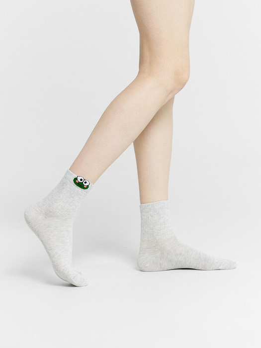 рис.2760 Женские носки средней высоты, с плотным бортом с рисунком в виде лягушки с элементами пикота на бортике.