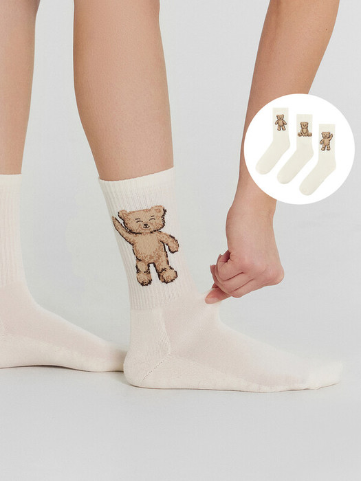 рис.2530 Мультипак из 3-х пар классических женских носков с высоким плотным бортом и рисунком в виде медвежат. Составляющие: 287A-2531, 287A-2532, 287A-2533