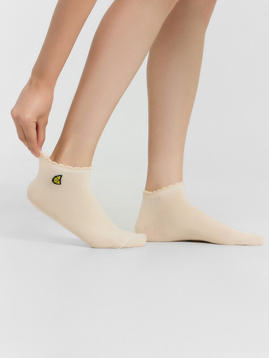 рис.1983  Женские носки укороченные с пикотом на борту и рисунком в виде дольки лимона.