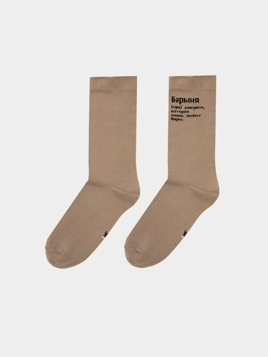 рис.2544 Женский, однотонный носок с тонким гладким бортом и рисунком в виде надписи "Барыня..."