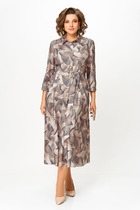 Платье изготовлено из текстильного полотна. Платье на бретельках полуприлегающего силуэта, длиной до колен. Перед и спинка с вертикальными рельефами. В левом боковом шве обработана застежка на потайную молнию. Верхний срез лифа обработан обтачкой из осн. полотна. Низ платья обработан швом вподгибку.