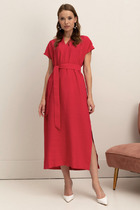 Женское платье полуприлегающего силуэта из нежной и легкой вискозы. Модель акцентирует внимание на талии. Вырез V-образный, с отрезным лифом и сборками по поясу. Рукава длинные, с манжетами и сборками. Длина модели ниже колена, силуэт к низу расширяется. Стильно!