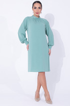 Платье из ткани полуприлегающего силуэта, отрезное по талии. Подрез под грудью со сборкой.