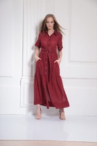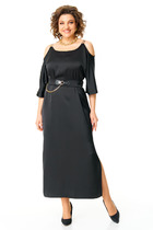 Платье отрезное по талии, низ платья из ткани присборен и к низу расширяется.