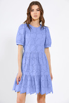 Платье прямое свободное, длиной миди. Горловина V-образной формы со стояче-отложным воротником. Плечо слегка спущено, рукав втачной, длинный. По низу рукавов отрезные манжеты с разрезами. Центральная застежка на петли и пуговицы. В боковых швах обработаны карманы. По бокам внизу обработаны разрезы. Нижний срез платья обработан швом вподгибку с закрытым срезом.