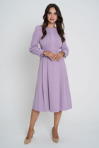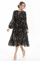 Платье полуприлегающего силуэта длиной миди идеально подойдет для различных повседневных и нарядных образов. Круглая горловина и короткие рукава придают ему универсальный и стильный вид. А застежка на пуговицу на спинке добавляет элегантности и удобства. Изделие выполнено из высокопрочного материала, приятного к телу, что обеспечивает комфорт и долговечность. Такая ткань будет держать форму и радовать вас своим качеством. Прекрасный выбор для тех, кто ценит стиль и комфорт в одежде!