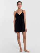 Сарафан женский свободного силуэта из ткани, муслин. Горловина с кулиской, присборена. В кулису протянута бейка, образующая бретели. Бретели завязываются на бантик. Низ сарафана застрочен швом в подгибку.