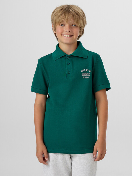 Поло свободного силуэта, перед и спинка цельнокроеные. По переду обработана застежка «поло» на 3 петли и пуговицы (d=10мм). Горловина с воротником стойкой из довяза DVС-100/001-0/5. Рукав втачной, одношовный, плечо спущено. Низу рукава - довяз DM2С-35/001-0/5. Низ изделия обработан швом в подгибку.