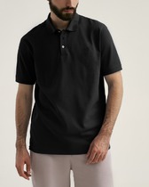 Джемпер мужской «поло» прилегающего силуэта из трикотажного полотна пике. Горловина круглой формы со стояче-отложным воротником из довяза. Центральная застежка планка на пуговицы. Шов горловины спинки обработан хб тесьмой. Рукав втачной, короткий. В боковых швах обработаны разрезы.