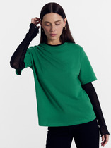 Поло прямое, свободное. Рукава втачные короткие, плечо слегка спущено. Перед с застежкой "поло". Верхняя планка цельнокроеная. Застежка на 3 петли и пуговицы (D 10мм). Воротник из довяза (арт. DVC-100/001-0/5). Шов втачивания воротника закрыт тесьмой хб 10мм. Низ поло и рукавов обработан швом вподгибку.