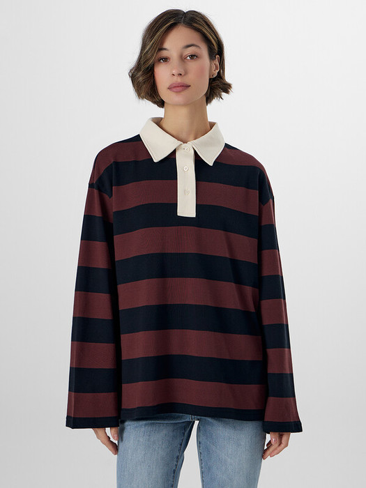 Поло прямое, свободное. Рукава втачные длинные, плечо спущено. Перед с застежкой "поло". Верхняя планка отрезная. Застежка на 3 петли и пуговицы (D 10мм). Воротник из основного полотна. Шов втачивания воротника закрыт бейкой из основного полотна. Низ поло и рукавов обработан швом вподгибку.