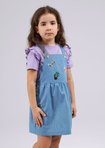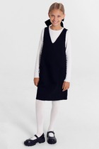 Сарафан А-силуэта, с отрезным воланом по низу. Kруглый вырез горловины, без рукавов. Низ изделия обработан швом в подгибку.
