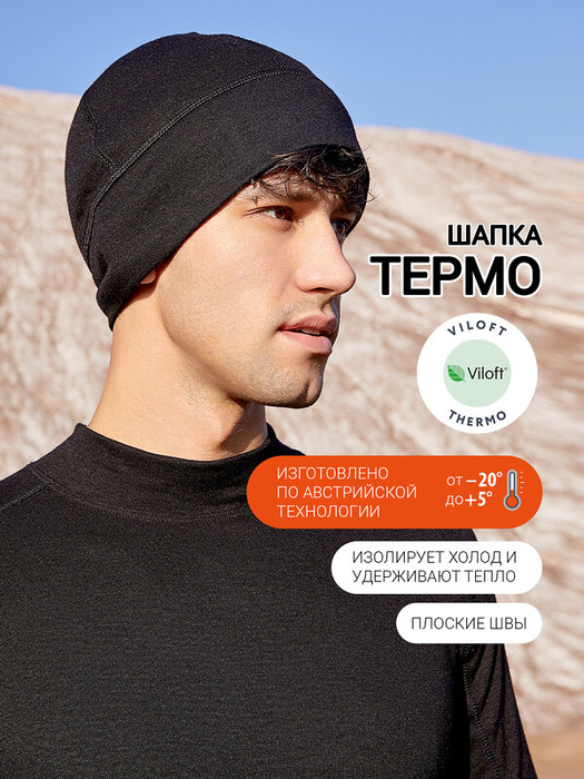 Лаконичная мужская шапка из термо-материала. Незаменимая деталь гардероба для холодного времени года. "Умный" термо-материал удерживает тепло и в то же время отводит избыточную влагу. Австрийская технология производства ткани позволяет выдерживать экстремальные температуры до -20 градусов Цельсия. Не мёрзните, не болейте и чувствуйте себя комфортно!