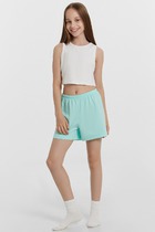 Шорты свободного силуэта для девочек. Выполнены из футера – мягкого, гигроскопичного и неприхотливого трикотажного полотна. Футер тонкий, без подчеса. Длина до колена. Боковые карманы добавляют практичности. Регулировать ширину по талии можно с помощью шнурка-завязки.
