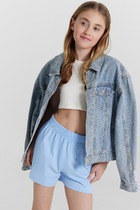 Свободные шорты для девочек, выполненные из трикотажного футера. Пояс с эластичной тесьмой внутри и регулировочным шнурком-завязкой. Рекомендуем!