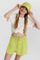 Шорты свободного силуэта из трикотажного футера. Широкий пояс с эластичной тесьмой внутри дарит комфорт. Рекомендуем для вашей девочки!