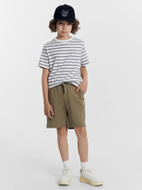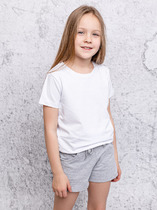 Шорты для девочек свободного силуэта из ткани. Посадка высокая. На детали переда карманы с отрезным бочком. Пояс отрезной с эластичной тесьмой RV40 внутри, на поясе пробиты петли и вставлен шнур из основного полотна. Шов втачивания пояса распошит. Длина выше колена. Низ обработан швом вподгибку с закрытым краем.