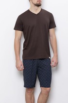 Шорты свободного силуэта. По переду имитация гульфика. По верхнему срезу настрочена жаккардовая тесьма 35 мм. JT7-35. Перед и спинка цельнокроёные.