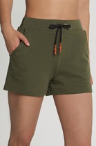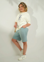 Шорты с посадкой на талии свободного силуэта, удлиненные. Пояс цельнокроеный с резиной внутри 30RV. Низ изделия застрочен швом в подгибку.