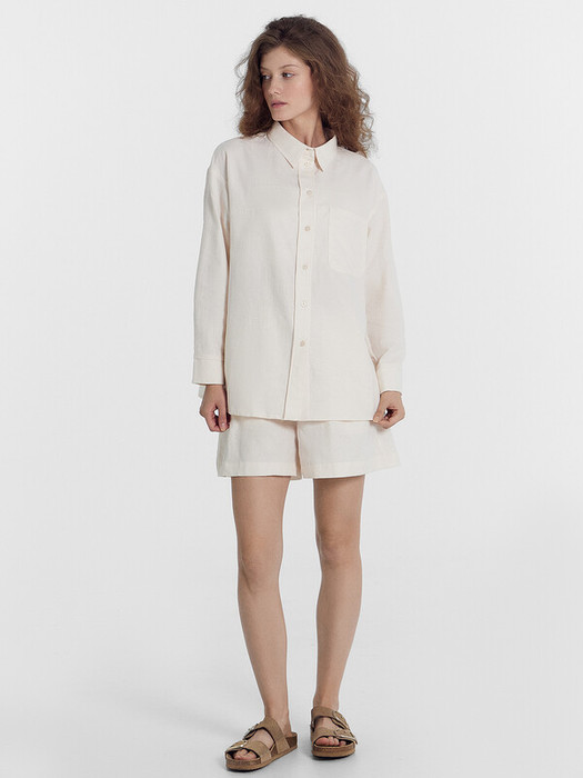 Шорты женские свободного силуэта из ткани. На детали переда карманы с отрезным бочком.