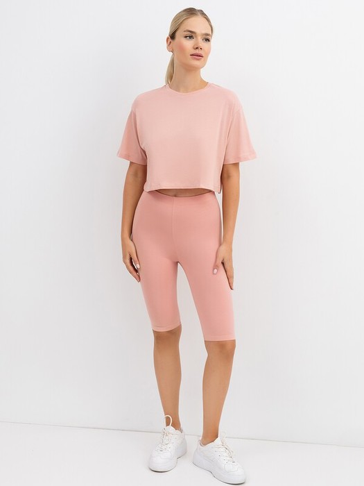 Отличные спортивные шорты. В составе полотна – натуральный хлопок и немного эластана. Длина до колена, силуэт прилегающий. Завышенная линия талии и широкий эластичный пояс дарят комфорт даже во время интенсивных занятий.