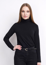 Горловина круглой формы, плотно прилегающая к шее, обработана притачной бейкой из рибаны, шов притачивания отстрочен на основное полотно. Плечо спущено, пройма углублена, с прямыми срезами. Шов втачивания рукава расстрочен (одна строчка по рукава, вторая по переду/спинке) .