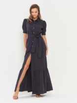 Горловина круглой формы, плотно прилегающая к шее, обработана притачной бейкой из рибаны, шов притачивания отстрочен на основное полотно. Плечо спущено, пройма углублена, с прямыми срезами. Шов втачивания рукава расстрочен (одна строчка по рукава, вторая по переду/спинке) .