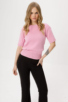 Свитшот прямого силуэта, свободный. Горловина круглой формы с обтачкой из рибаны. Рукава втачные длинные с отрезными манжетами из рибаны. Плечо спущено. По низу свитшота отрезной пояс из рибани и декоративная деталь из ткани имитирующая низ рубашки. Декоративная деталь по переду с застежкой на петли и пуговицы (на 4 прокола, d 10мм). Нижний срез фигурный.