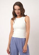 Топ женский прилегающего силуэта из трикотажного полотна рибана. Горловина круглой формы.