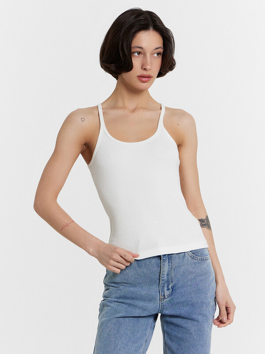 Горловина округлой формы, бретели тонкие. Срезы горловины и проймы окантованы бейками из основного полотна.