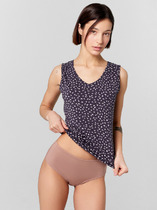 Топ женский изготовлен из трикотажного полотна интерлок. Топ облегающего силуэта на широких бретелях. Вырез горловины округлый.