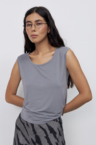 Горловина и проймы окантованы широкой бейкой из основного полотна.
