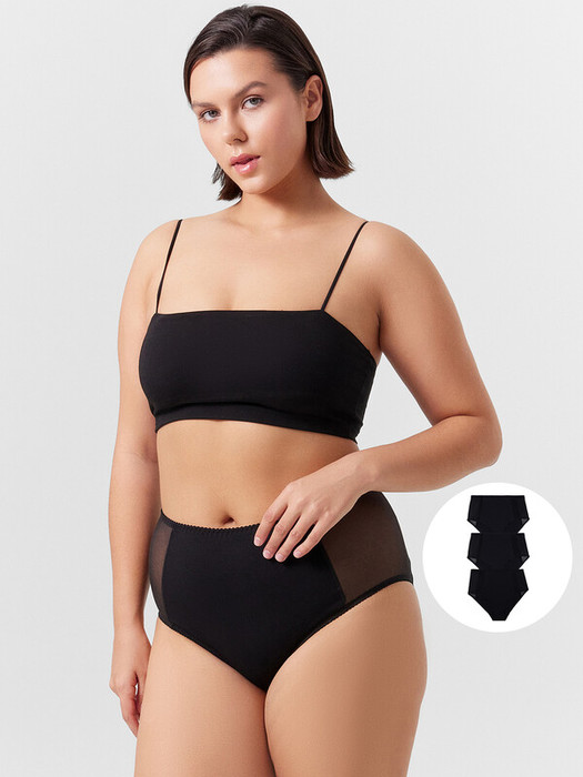 Трусы женские макси с высокой посадкой из кулирной глади. Передняя деталь из хлопка, с отрезными бочками, переходящими на заднюю деталь. Бочки выполнены из эластичной сетки. Задняя деталь из хлопка. Подкладка ластовицы из хлопка, отлетная по переднему краю. Талия обработана жесткой эластичной тесьмой с зубом в один прием. Ножки обработаны эластичной тесьмой.