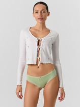 Трусы женские, средняя линия талии, силуэт - бразилиана, выполнены из трикотажного кулирного полотна. Передняя и задняя детали цельные. Подкладка ластовицы из основного полотна, отлетная по верхнему срезу.