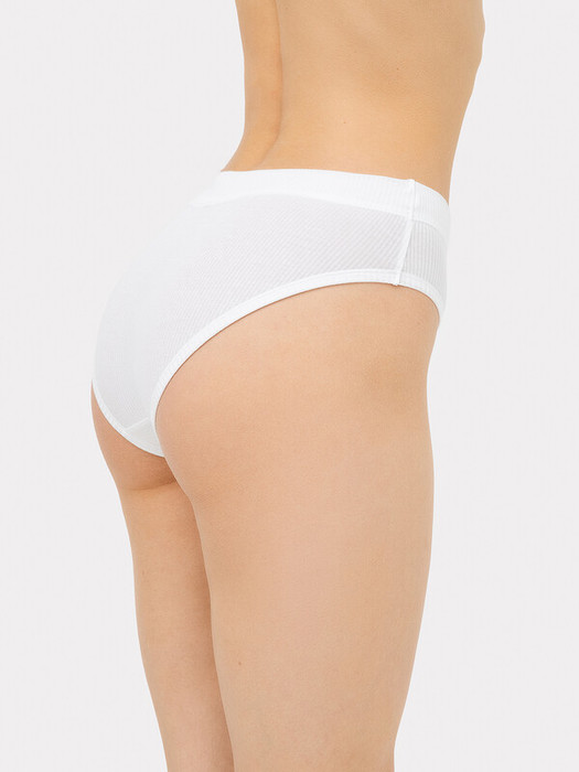 Трусы женские, средняя линия  талии, силуэт - слипы. Передняя и задняя детали выполнены из рибаны. Верхний срез трусов обработан бейкой поперечной из рибаны, внутри жилка 6мм. Нижние срезы обработаны бейками поперечными из рибаны. Подкладка ластовицы из хлопка, отлетная по верхнему срезу.