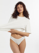 Трусы женские, средняя линия талии, силуэт-слипы. Передняя и задняя детали выполнены из интерлока. Подкладка ластовицы выполнена из кулирки, отлетная по переднему срезу. Боковые протяжки трусов выполнены из декоративной тесьмы.